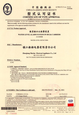 散货船水位报警装置型式认可证书